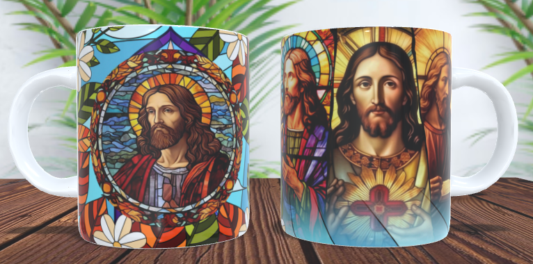• Caneca Jesus na vidraça de 350ml.
